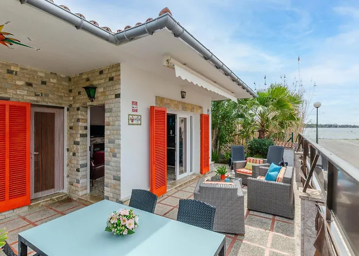 De villa biedt uitzicht op het meer en beschikt over een terras.